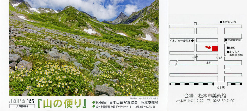 日本山岳写真協会(JAPA)は1939年、東京山岳写真会を前身として誕生した、日本では最古の山岳写真家集団です。東京に本部を構え、各地域に7つの支部があり松本支部もその一つです。